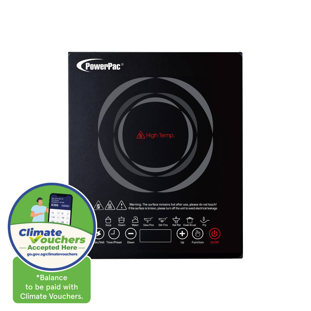 ![[NEA CLIMATE VOUCHER $400] Induction Cooker, 10 Preset Functions, 1800W (PPIC888A)](http://powerpac.com.sg/cdn/shop/files/PPIC888A_CV_02.jpg?v=1773650474&width=533)