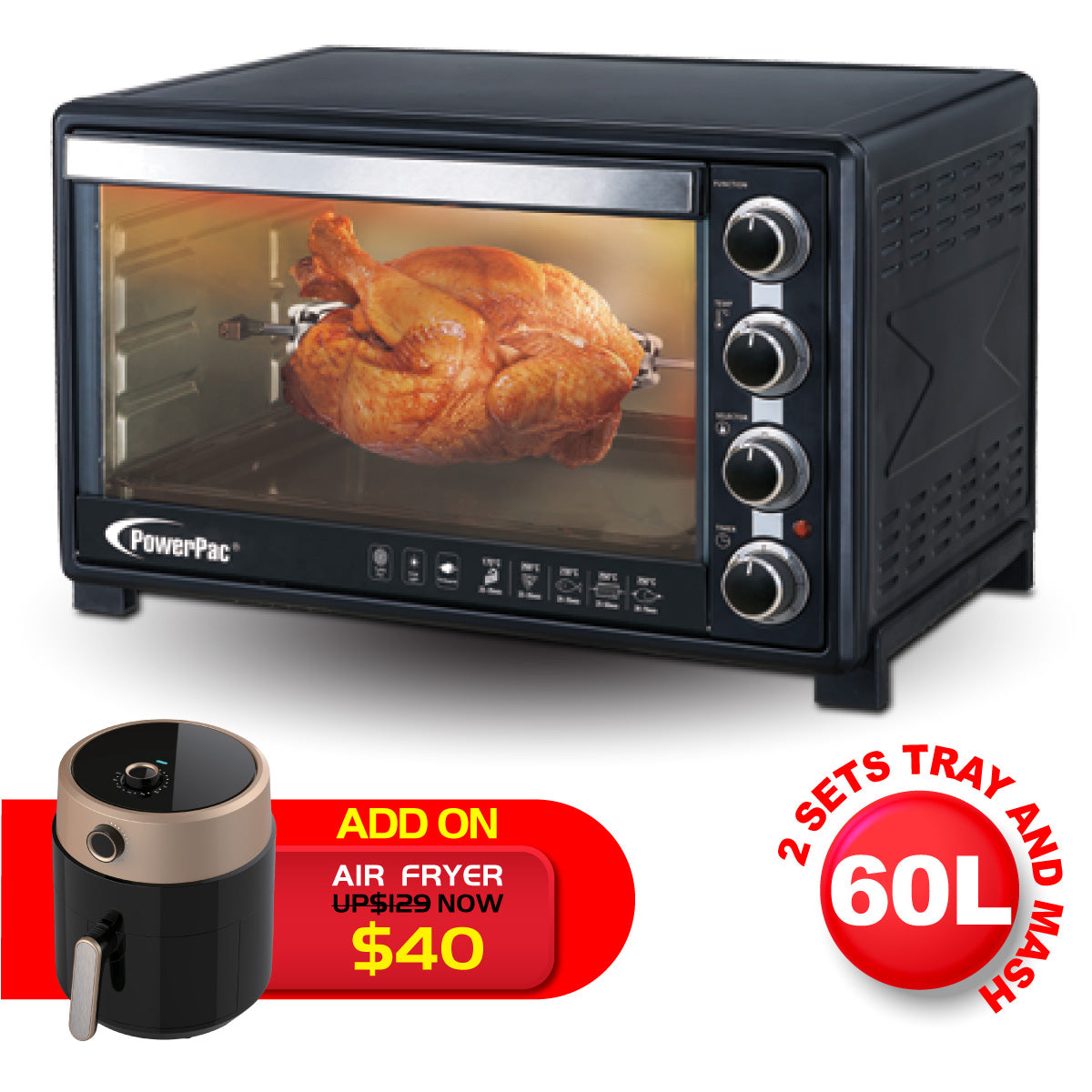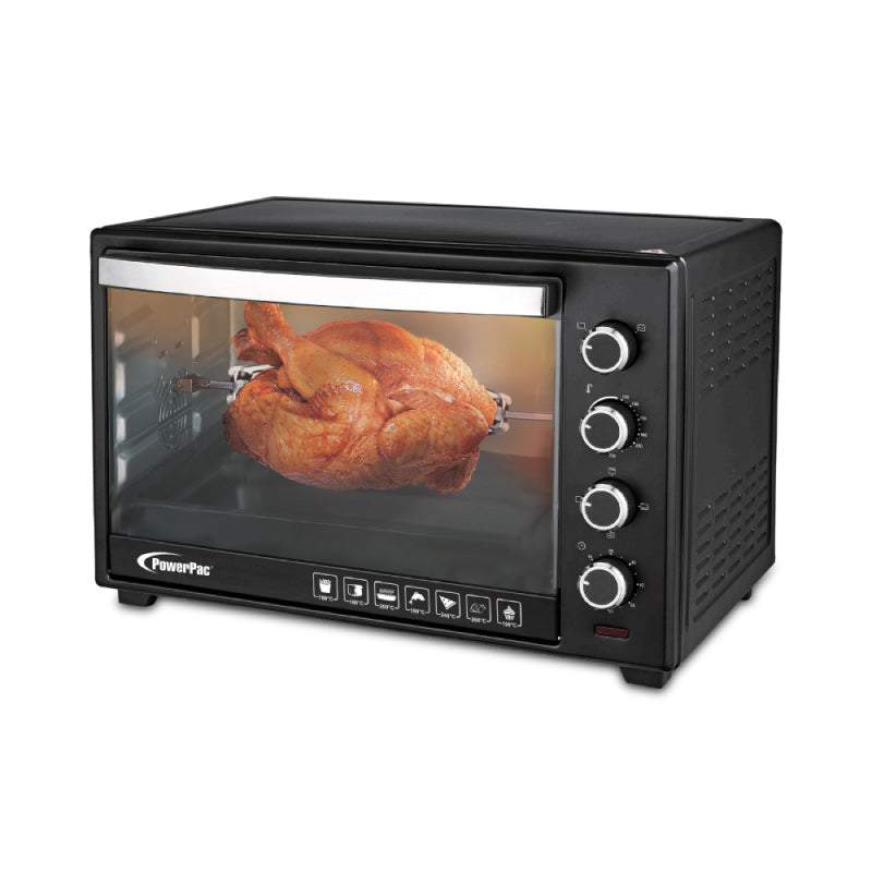This PowerPac Electric Oven 60L with Rotisserie and Convection Functions PPT60 with 4 knobs control to optimise different settings, temperature control...