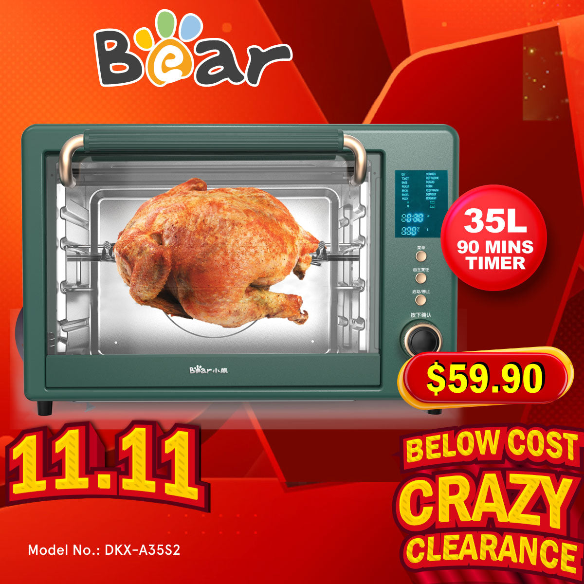 BearBear 35L Digital Oven With Rotisserie & 11 Preset Functions (DKX-A35S2)363 Sold 🔥 / 📦 298 In Stock This Bear Digital with Rotisserie 35L Oven & 11 Preset Functions DKX-A35S2 with Digital Control Panel to optimise different settings, temperature control and... $59.90 SGD $329.00 SGD$59.90 SGD$59.90 SGD $329.00 SGD