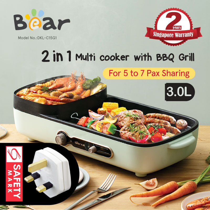 Bear Steamboat with BBQ Grill, 2 in 1 Multi Cooker with Non-stick inner pot (DKL-C15G1)