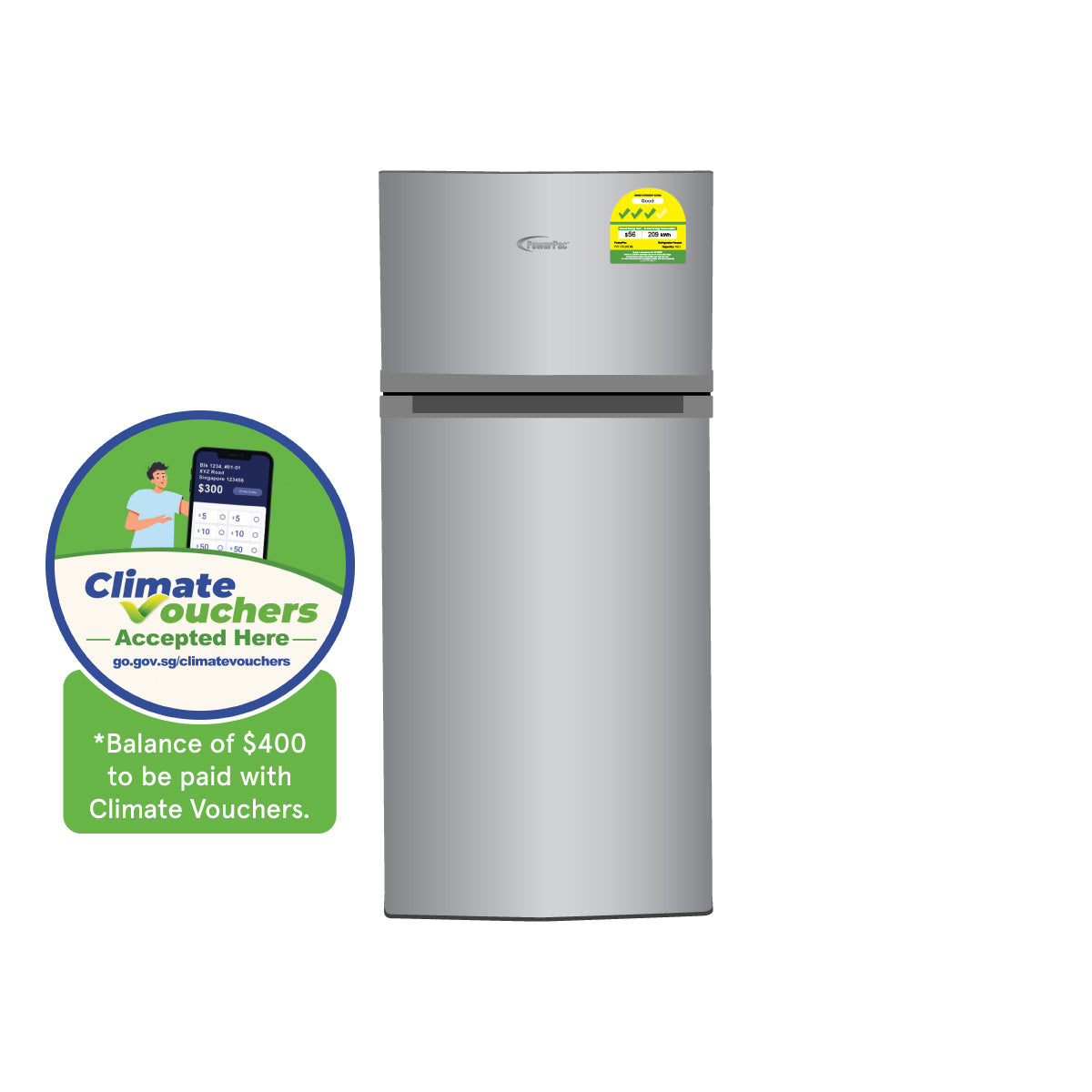 ![[NEA CLIMATE VOUCHER $400] 135L 2 Door Mini Fridge with Freezer, shelves, crisper, anti-bac Carbon Filter, optimal door seal, Freezer temp < -18°C, silver, PPF136](http://powerpac.com.sg/cdn/shop/files/PPF136_CV_02.jpg?v=1750752347&width=533)