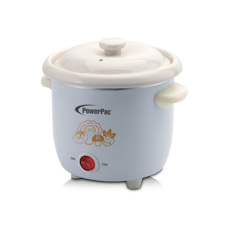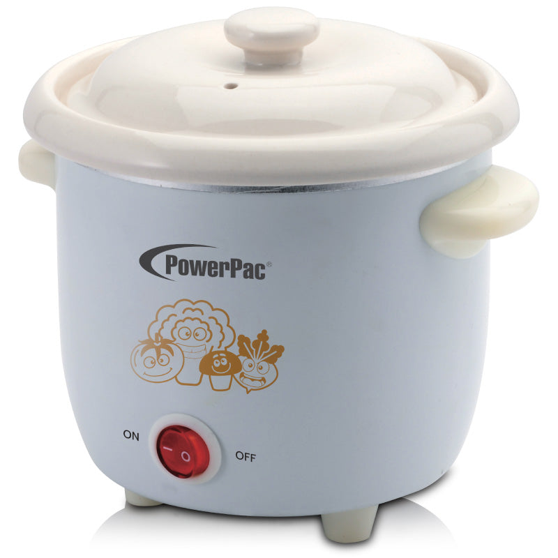 This PowerPac Slow Cooker PPSC07 can be used for cooking porridge, chowders, stews as well as preparing various types of soups (especially herbal soup, chicken soup & fish soup) purees (corn, pumpkin, etc.) as well as scented teas. It is especially useful in preparing homemade food for babies toddlers. It possesses the following features: a removable 0.7 Litre Ceramic Pot with a removable Ceramic Lid, a large heating plate as well as side heating to accelerate the heating process, and is easy to use. The use of high quality ceramic helps retain the flavour of foods whilst maintaining moisture and nutrients.