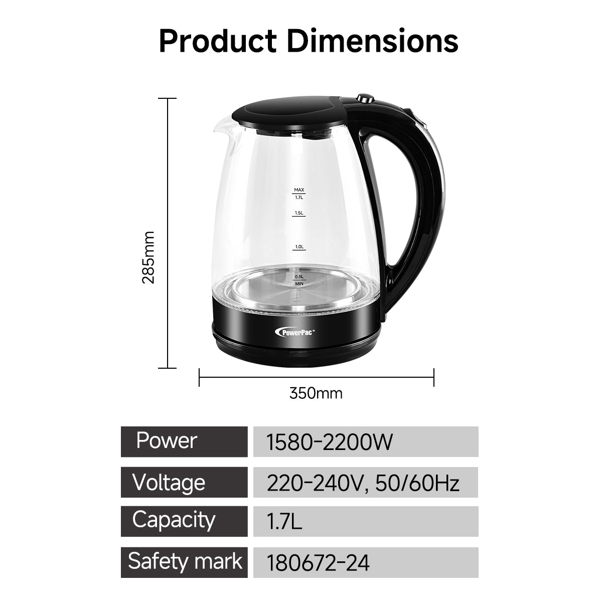 The PowerPac Cordless Kettle Jug 1.7L Glass Jug PPJ2004G is a wonderful addition to any proud kitchen.