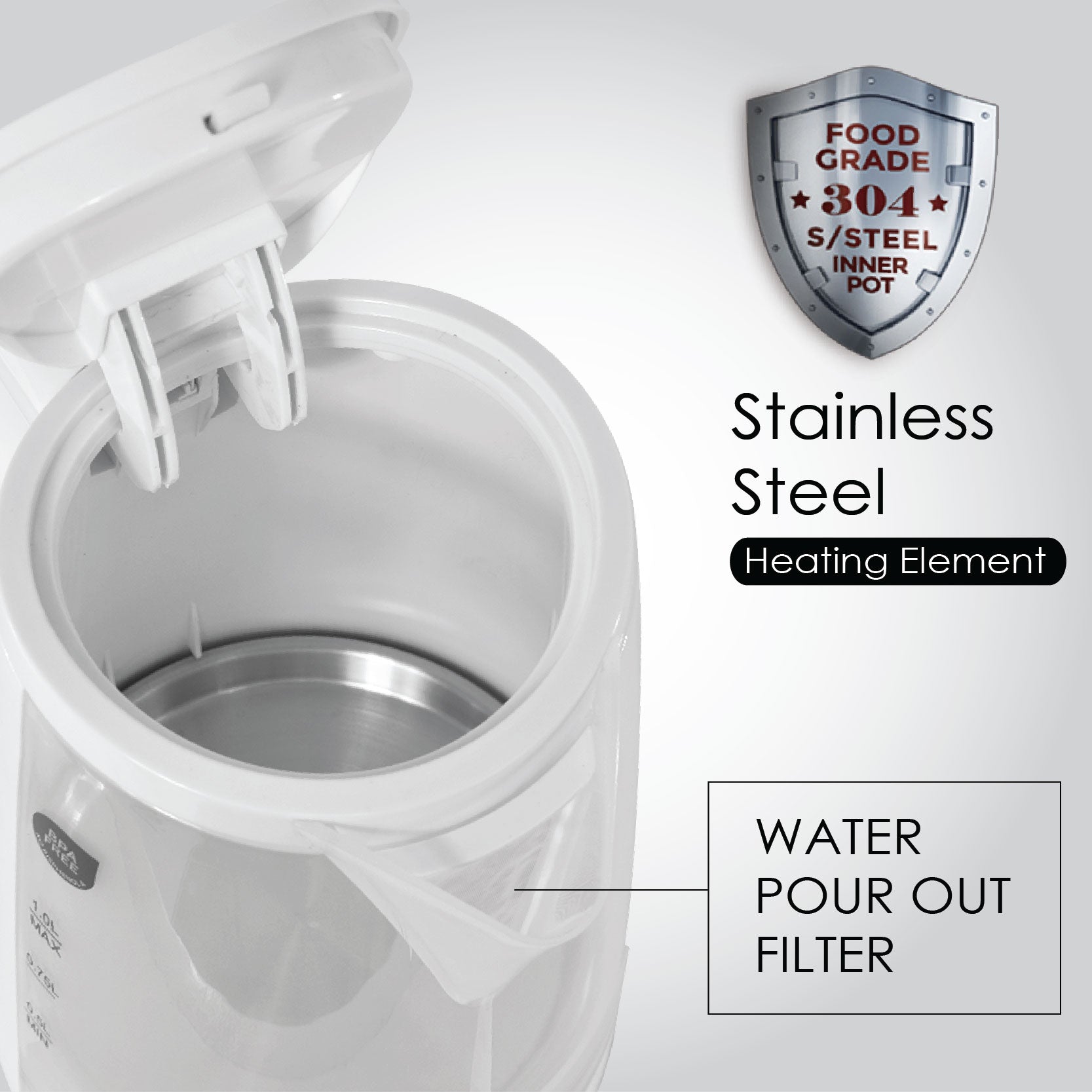 Introducing the PowerPac 1.7L Kettle Jug BPA-FREE PPJ2002. The internal surfaces which include the Inner Pot and Heating Coil, are made with 304 food-grade stainless steel. The plastic components are, of course, BPA-free.