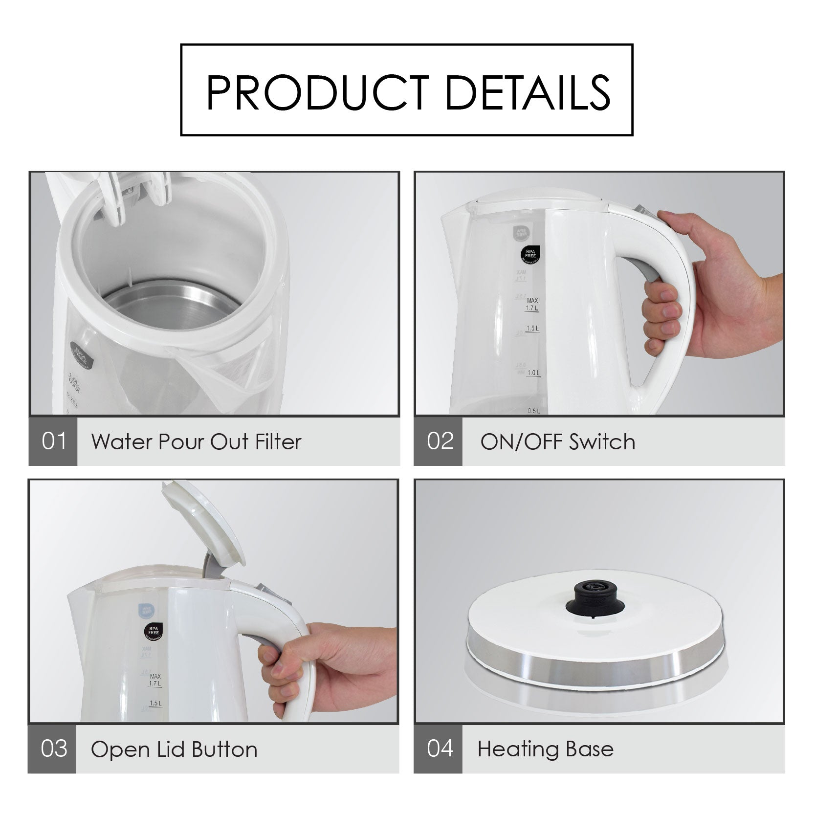 Electric Kettle Jug, Cordless Jug 1.7L BPA FREE (PPJ2002)