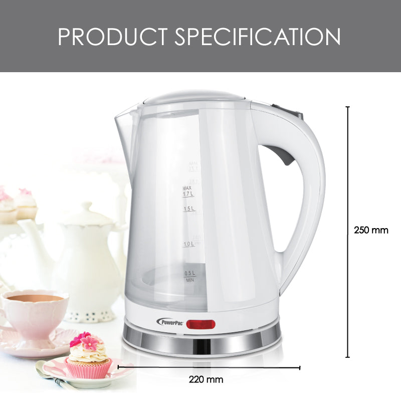 The PowerPac 1.7L Kettle Jug BPA-FREE PPJ2002 is a dependable, safe and easy-to-use kitchen appliance.