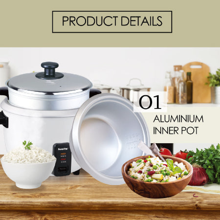 Just tender, fluffy rice with the PowerPac 1.8L Rice Cooker with Aluminium Inner Pot and Steamer PPRC8.
