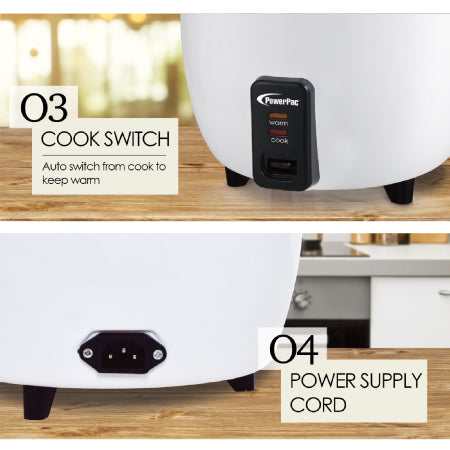 If you are looking for a Rice Cooker that works perfectly the way that it was manufactured to do, you would not be disappointed with the PowerPac 1.8L Rice Cooker with Non-Stick Inner Pot and Steamer PPRC8. This device is sturdy, dependable, has an Stainless steel Lid which will not corrode, easy to operate, uses less electricity due to its high energy efficiency, is long-lasting and will provide pots of fragrant, fluffy rice for many years to come.