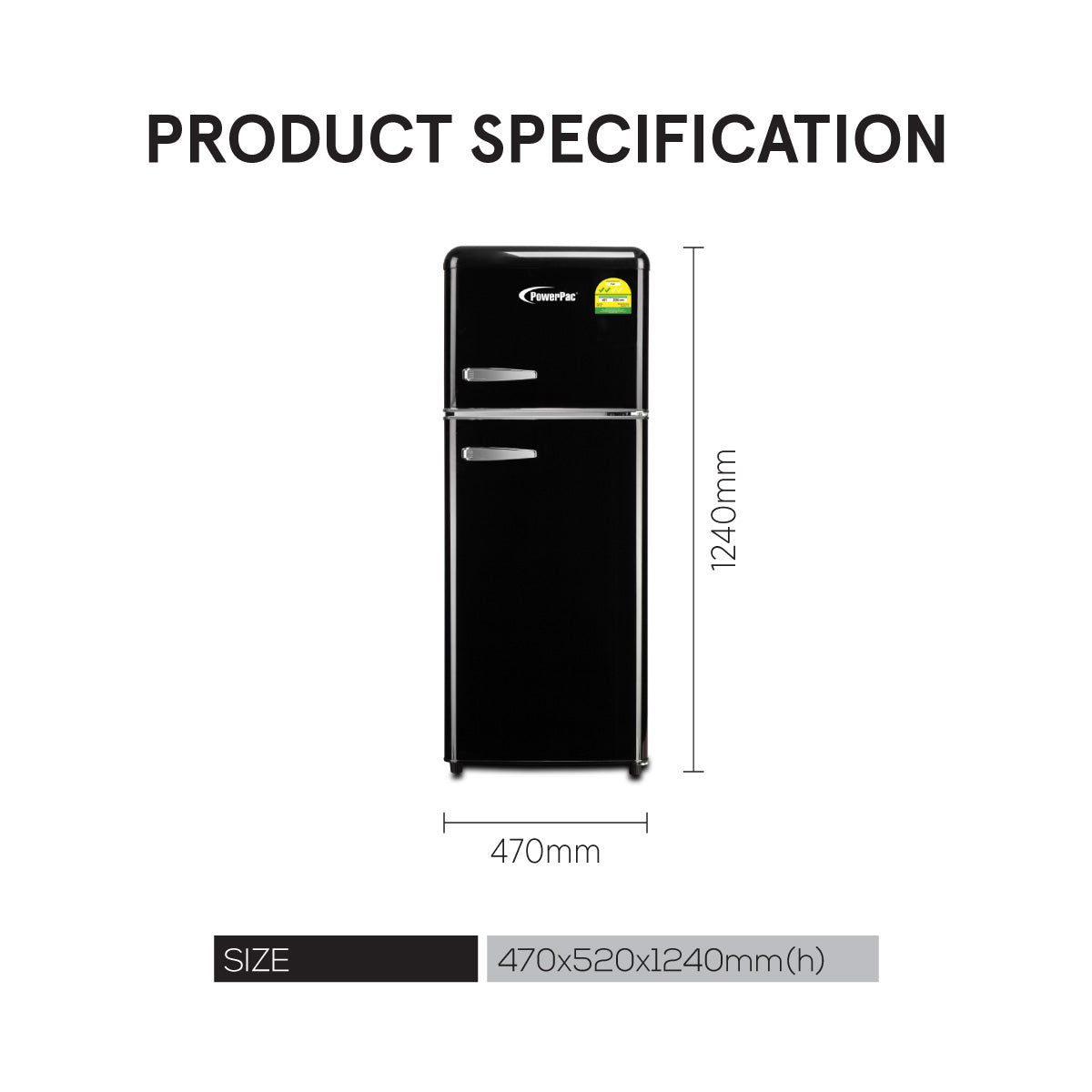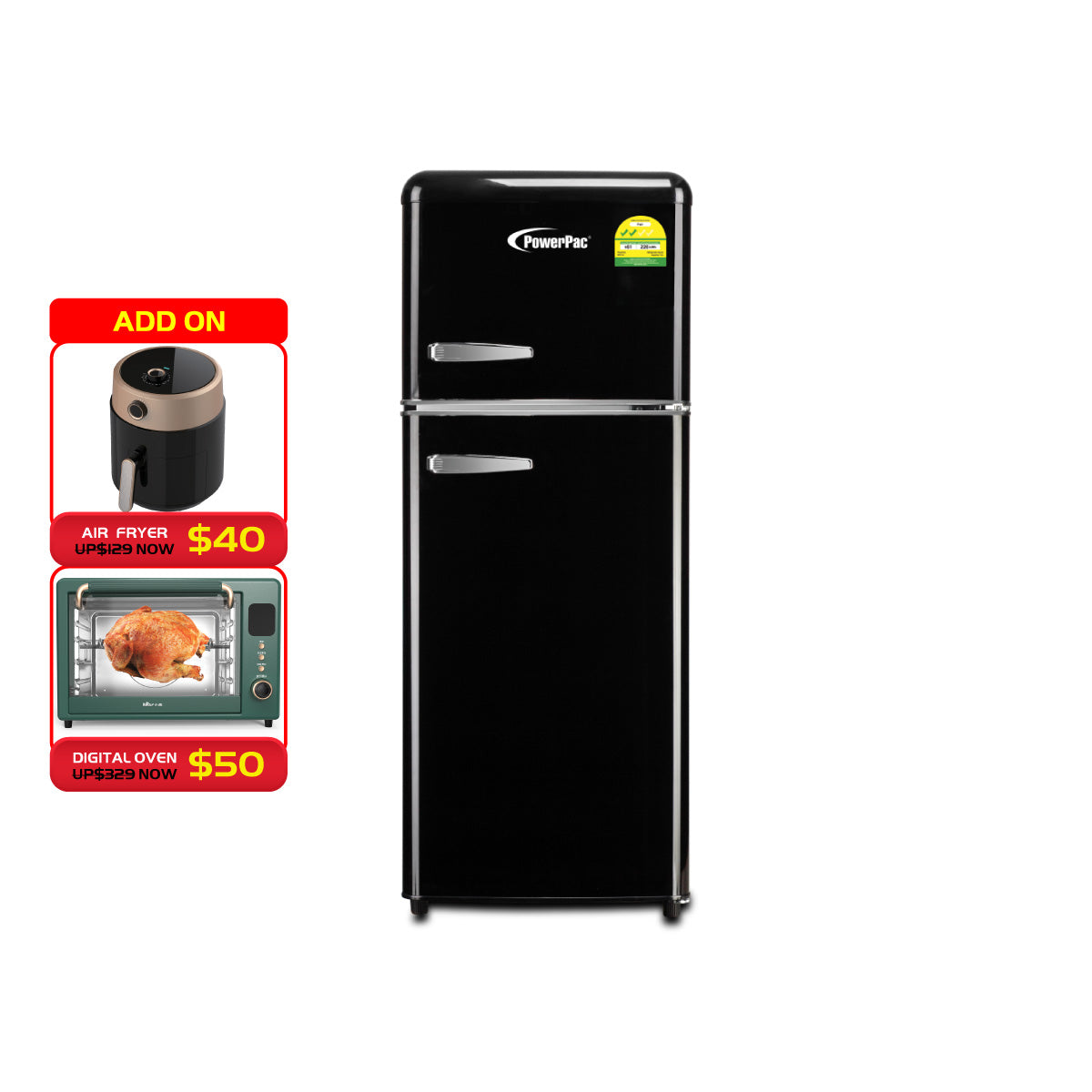 2-Door Fridge 114L Retro Fridge, Mini Fridge (PPF118) Black