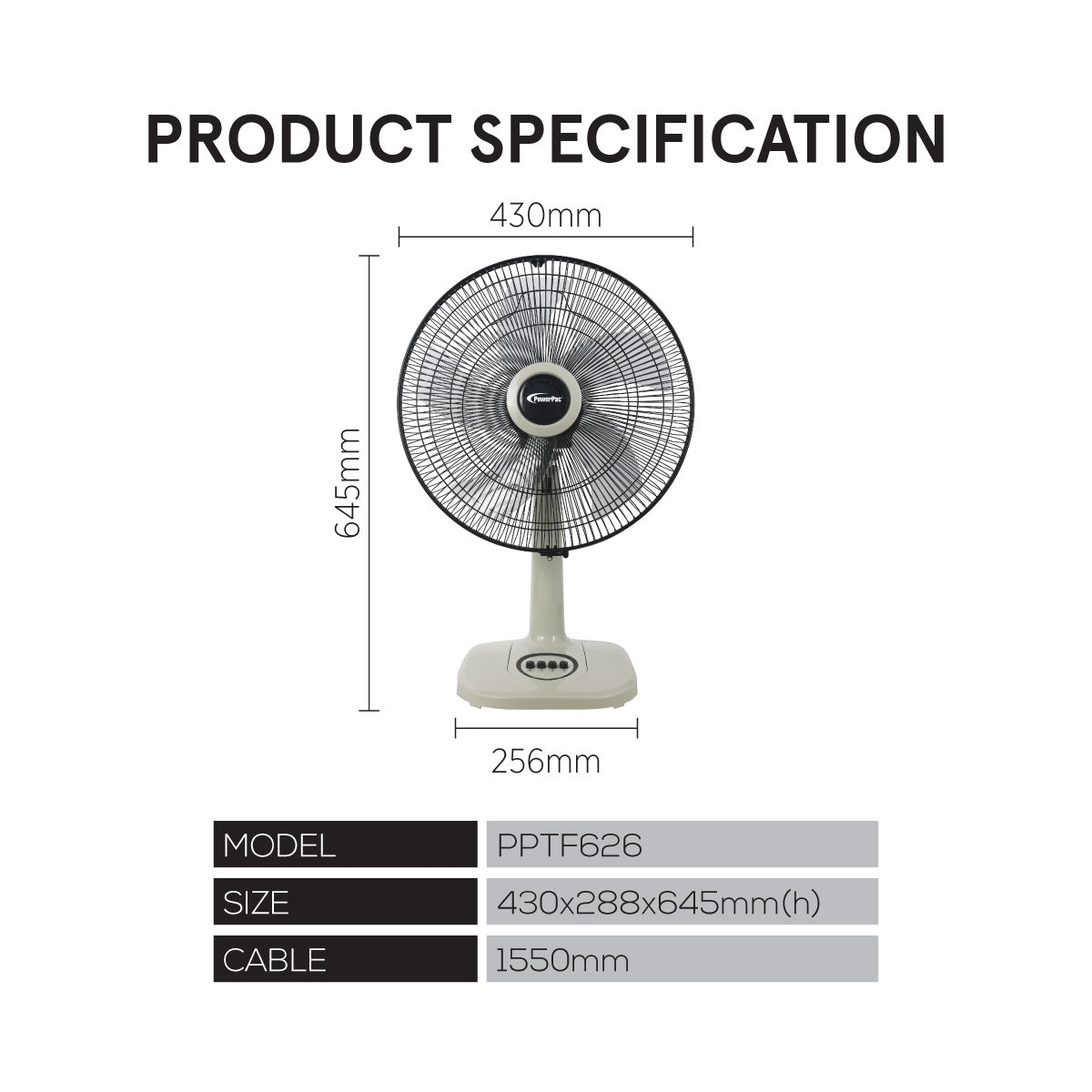 16 inch Portable Fan, Desk fan, Table Fan with Oscillation (PPTF626)