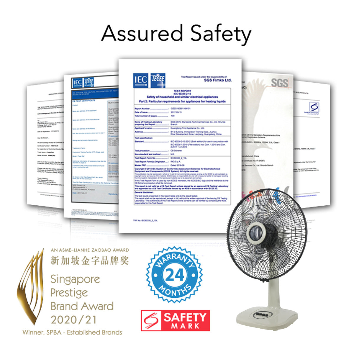 The sturdy, portable design and fire-retardant materials make it ideal for daily use in Singaporean homes. Simple to assemble, operate and clean, this fan combines functionality with user-friendly design. The Singapore Safety Mark certification (250200-24) assures you of safety and quality in every detail.