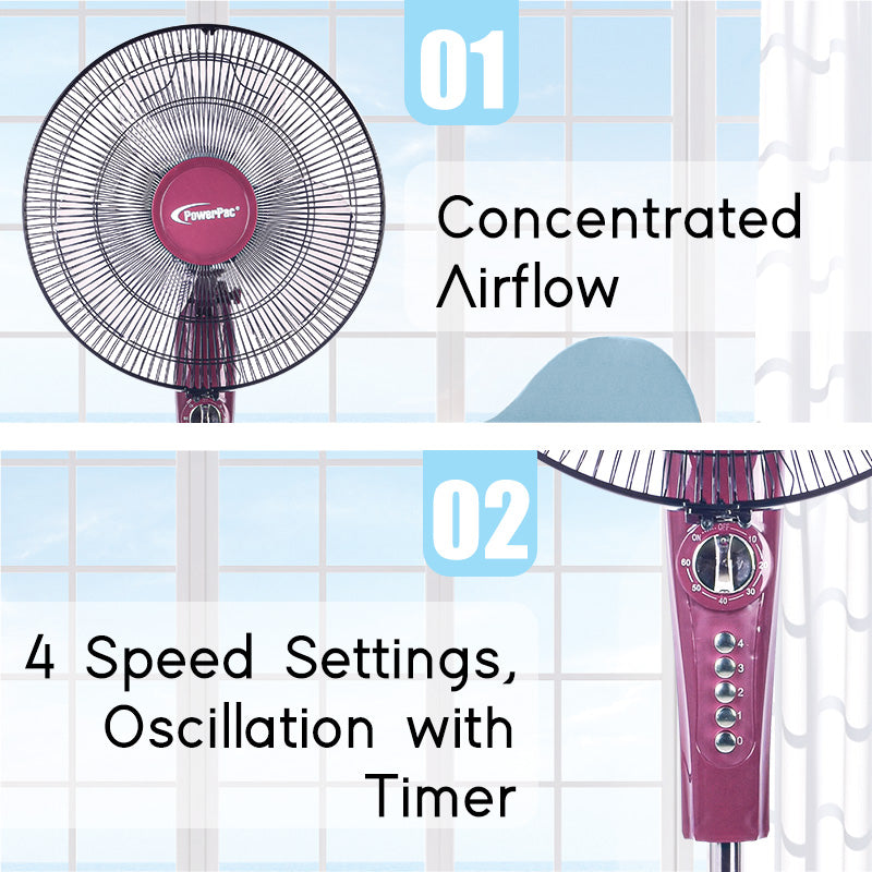 PowerPac 16" Stand Fan with Timer PPFS50 – High Performance, Durable