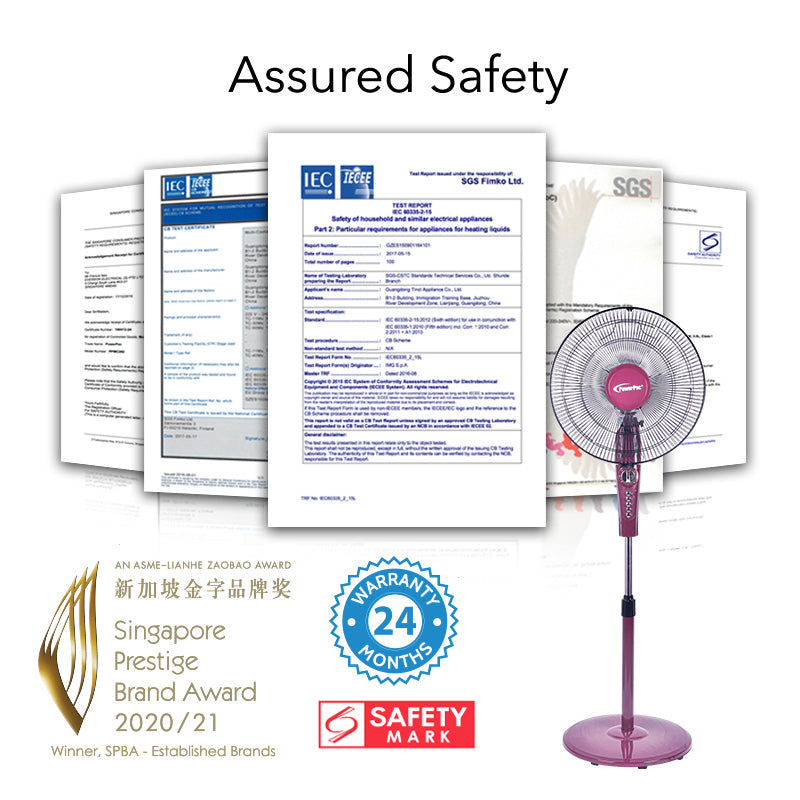 PowerPac 16" Stand Fan with Timer PPFS50 is designed to deliver powerful, energy-efficient cooling for your home or office. With its high-performance motor, this fan ensures consistent airflow and maximum comfort throughout the room. The oscillating function promises wide air coverage and distributes air evenly, keeping your space fresh and well-ventilated. Its adjustable height and louvre allow you to customize the direction of airflow for optimal ventilation.