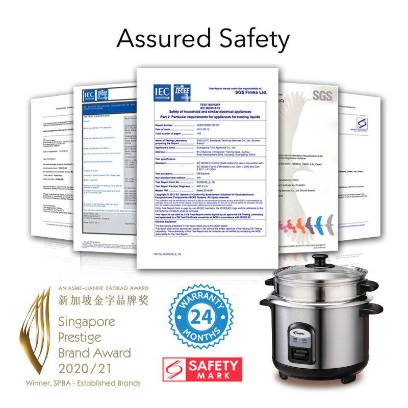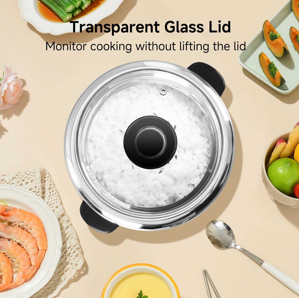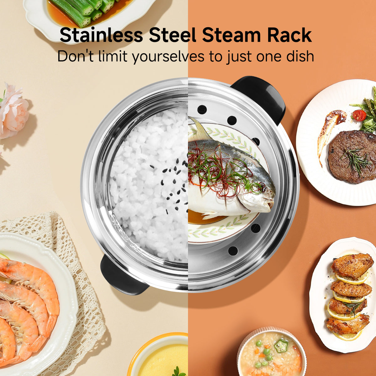 - With stainless steel food steamer, 1.0L good for 2-3 person