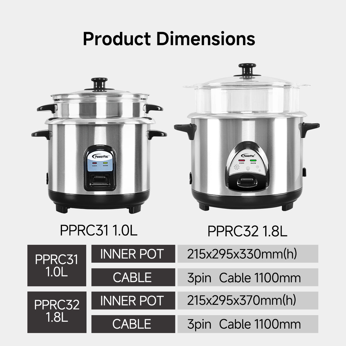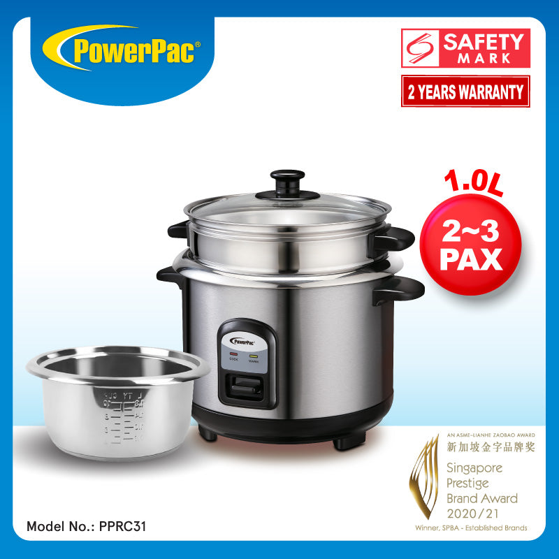 Taste an endless array of dishes with the PowerPac 1.0L Rice Cooker with Stainless Steel Inner Pot & Steamer PPRC31.
