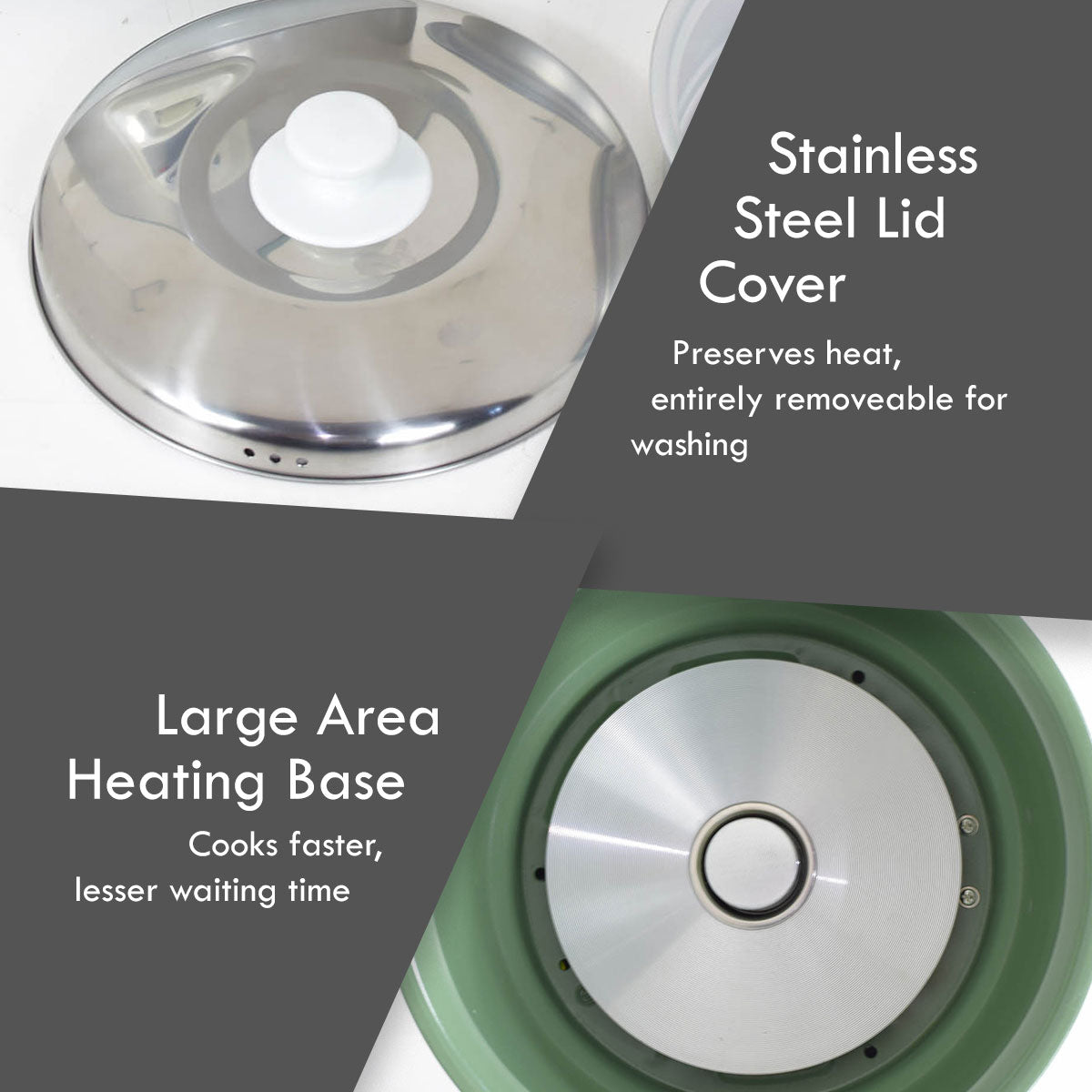 Use the aluminium Steamer to steam meat, seafood or vegetables, which release nutrients and add flavours while the rice or porridge is cooking below; saving time and energy to efficiently prepare a complete meal.