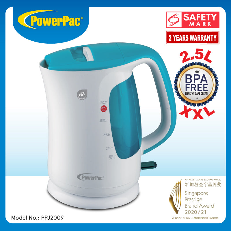 Introducing the PowerPac Electric Cordless Kettle Jug 2.5L BPA Free PPJ2009. The internal surfaces which include the Inner Pot and Heating Coil, are made with 304 food-grade stainless steel. The plastic components are of course, BPA-free.