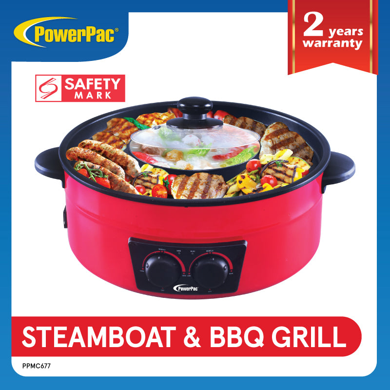 The PowerPac 2-in-1 Steamboat / BBQ Grill Multi-Cooker PPMC677 is light, easy to handle, attractively-designed, uses less electricity due to its high energy efficiency and serves to ensure your food is safe for consumption for many years to come.