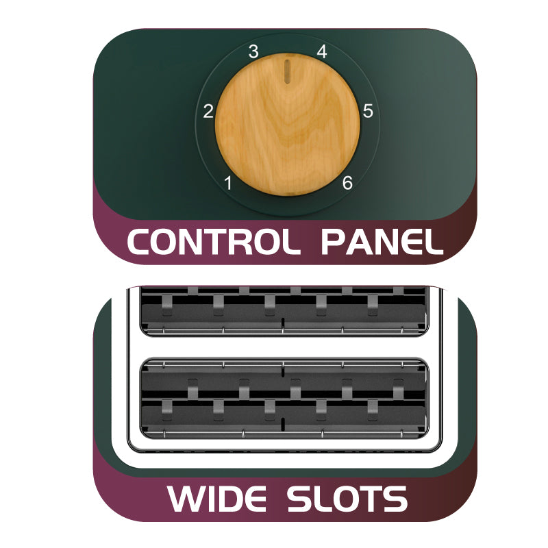 - Wide slots and easy operation, Cool touch body, Auto pop-up