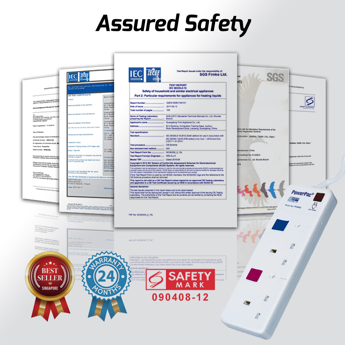 Colourful individual socket switches enhance safety, especially for those with compromised vision; while the powerboard light lets you know whether the extension switch is ON or OFF. Safety Shutter prevents children from tampering with the device. With 2-Pin direct, inserting 2-Pin plugs into the sockets no longer require any plastic adapters. All materials are Fire-retardant.