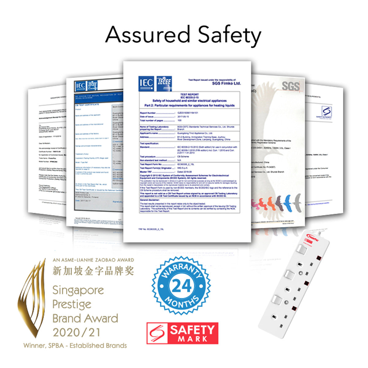 The PowerPac 3 Metre 3 Way Extension Cable PP3883N is lightweight & compact and comes with Singapore's Safety Mark (090409-12) attesting to its safety.