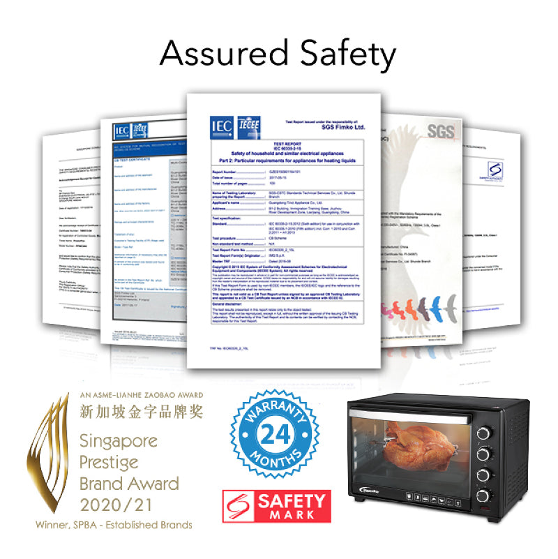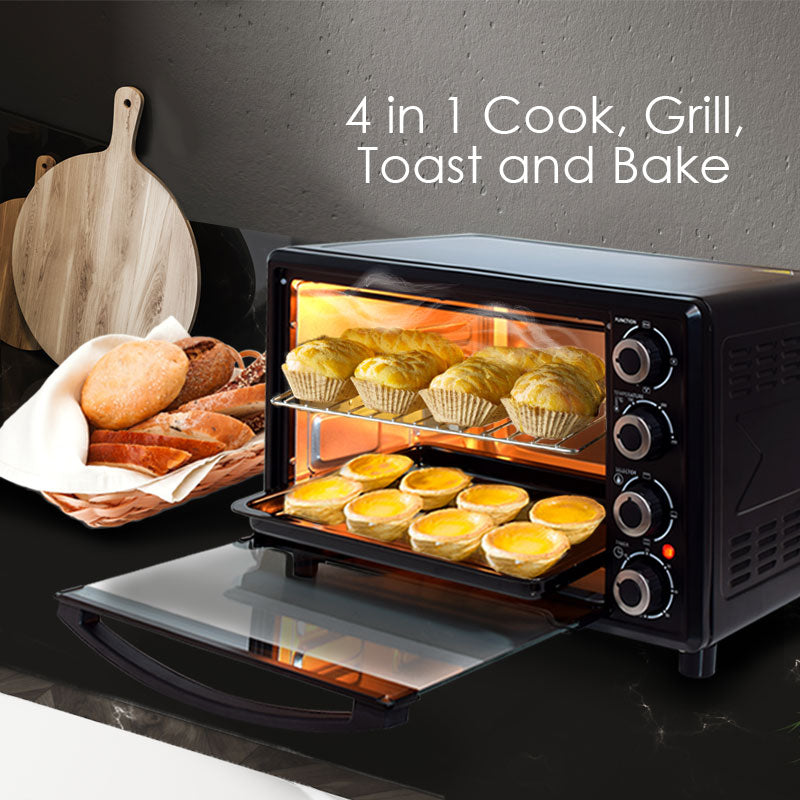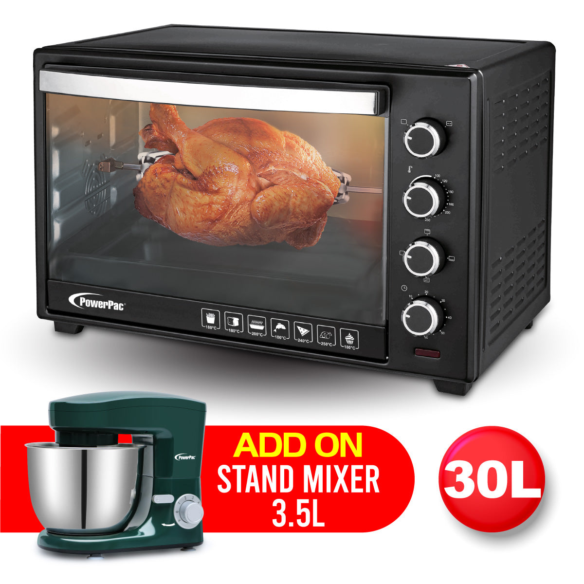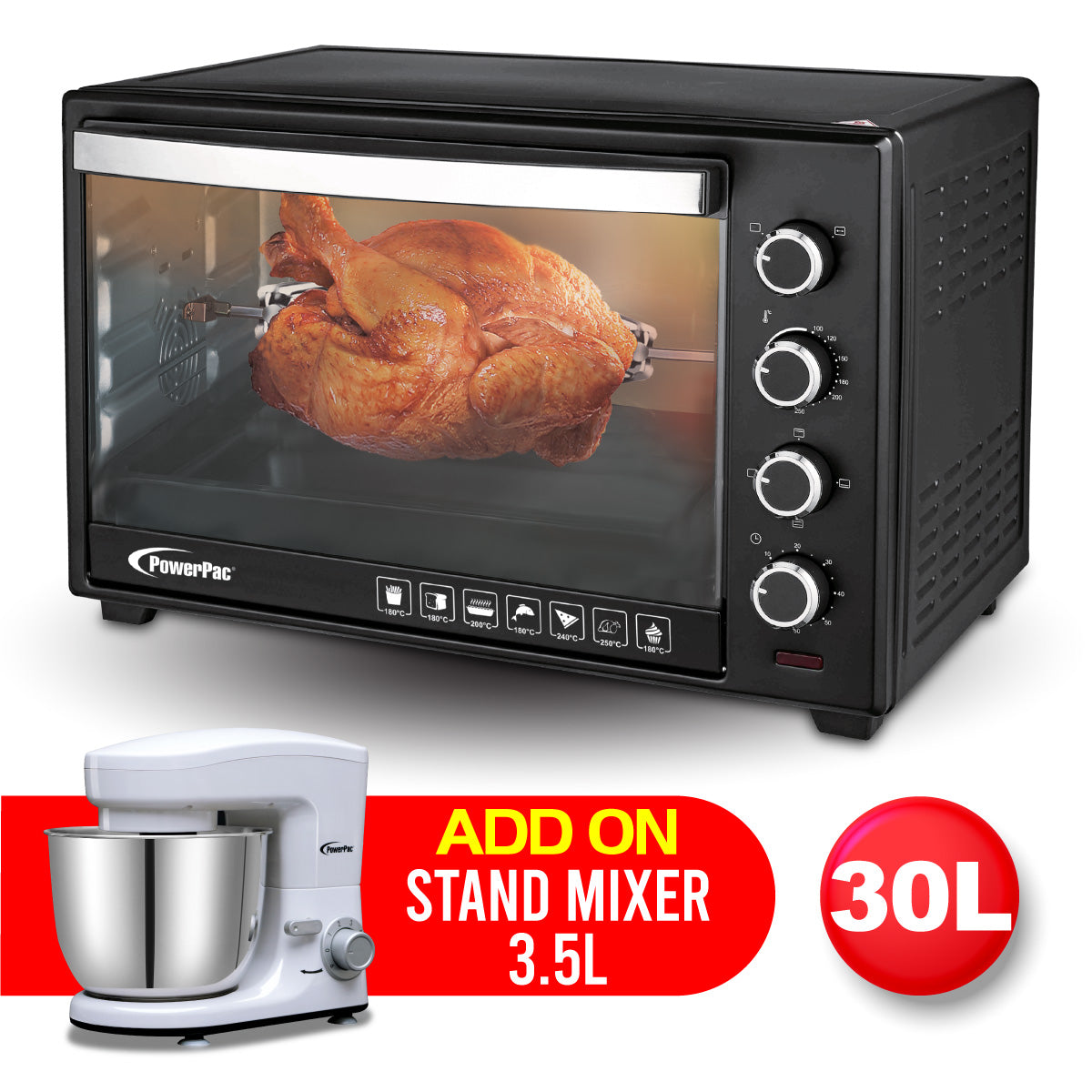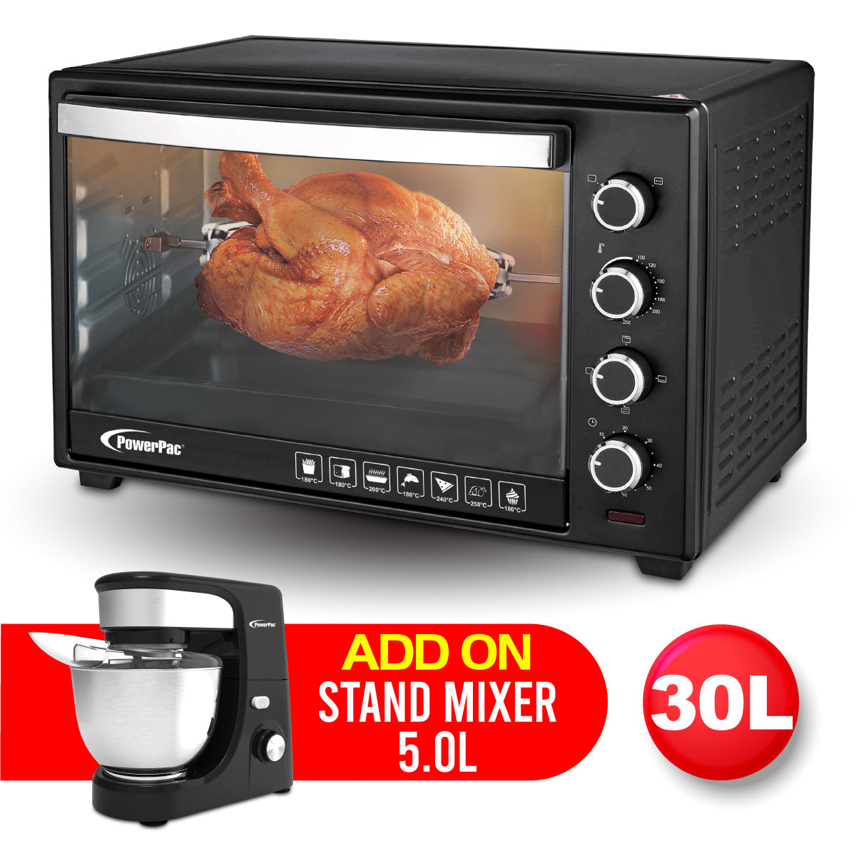 This PowerPac Electric Oven 30L PPT30 with 4 knobs control to optimise different settings, temperature control and operate the heating tubes. It is designed with cool touch handle to prevent any burnt to your palm and fingers.