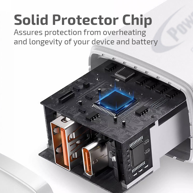 USB Smart & Fast Charger - 1 QC3.0 USB-A, 1 PD3.0 USB-C, Dual Voltage 100-240 AC, 30W, PP7983WH
