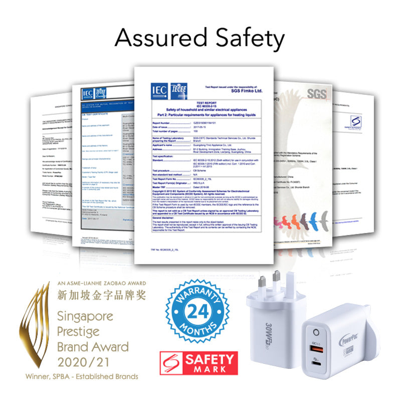 Certified with Singapore’s Safety Mark (220836-12), the PowerPac USB Smart & Fast Charger PP7983WH meets stringent safety regulations, making it a reliable solution for home, office, and travel use. The LED neon indicator lights up to show that your adapter is powered on, giving you visual assurance that your devices are connected safely. It’s the smart choice for users looking for safe, compact, and travel-ready USB charging at any destination.