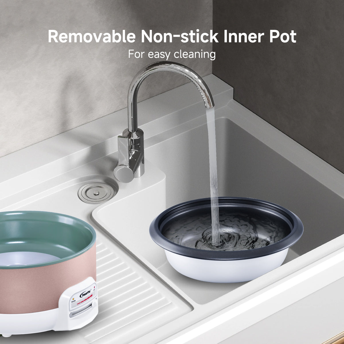 It possesses the following features: a removable power cable for convenience, and a removable stainless steel Inner Pot with non-stick coat which can hold a wide variety of food items. Its safety features include auto-shut off function which automatically shuts off power when the temperature rises above a threshold limit.