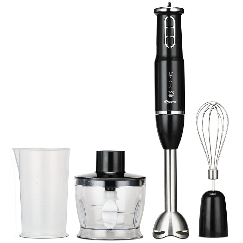 This PowerPac 4in1 Hand Blender Set with Stainless Steel Blade 600W PPBL393 is remarkably versatile and functions as a Blender, a Chopper (Mincer) and a Whisk. It is compact enough to leave on your kitchen top, as the tasks it performs is well-suited for the preparation of every meal.