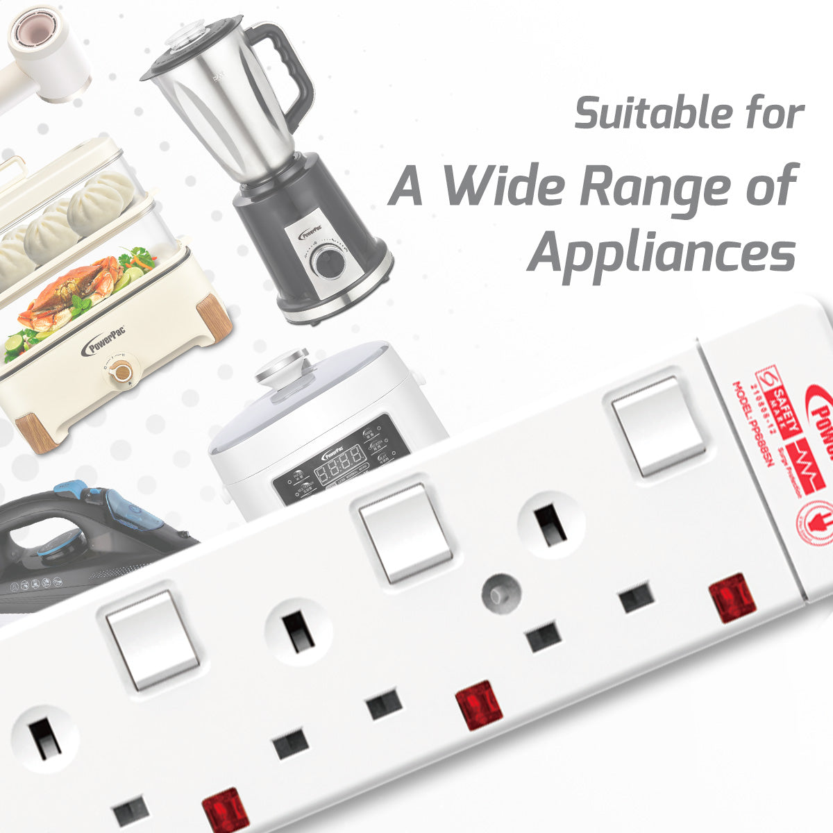 - 2-pin direct socket insertion for wide range of electrical appliances.