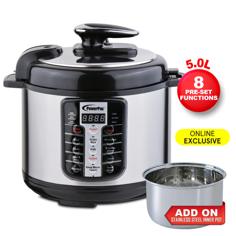 This newly introduced PowerPac 5L Digital Pressure Cooker PPC511 will help you cook the foods you like in a consistent and convenient manner; and food is also hygienically prepared.