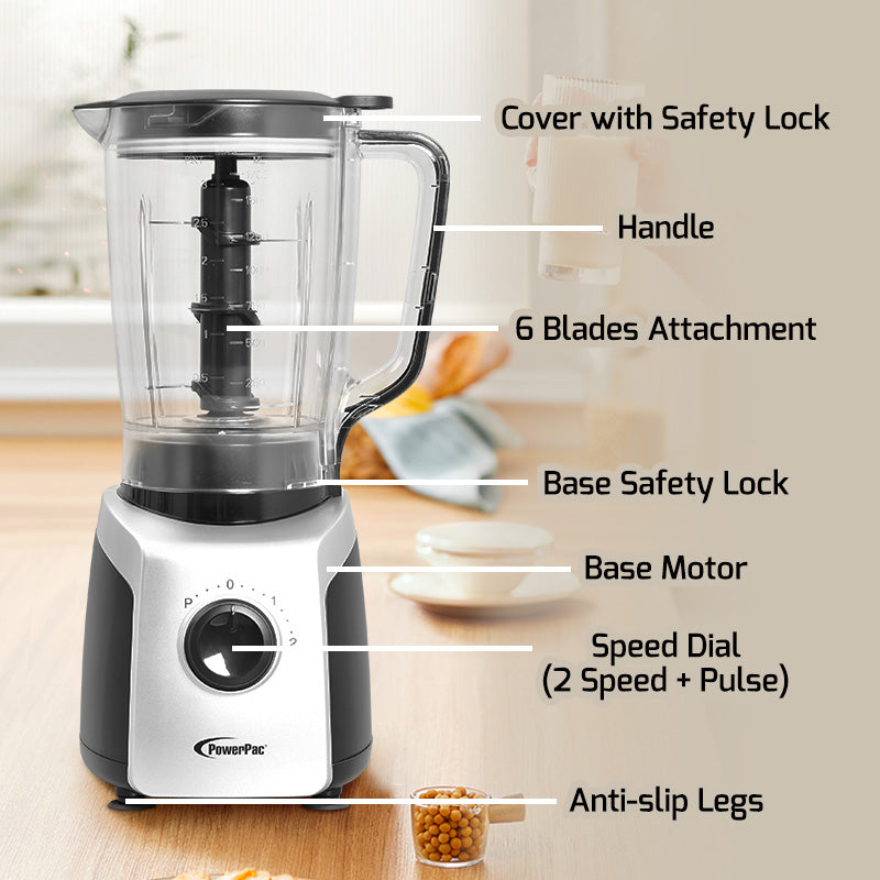 This PowerPac Professional High Power Blender 800W PPBL600 is a specialised Blender. Not only does the PPBL600 blend fruits, liquids, yoghurt and ice-cream; but, with the high quality, robust and sophisticated Blender Blade assembly with 6 blades instead of 2, frozen fruits, vegetables, meat and even ice can be blended effortlessly and fast, which a normal blender simply cannot handle.