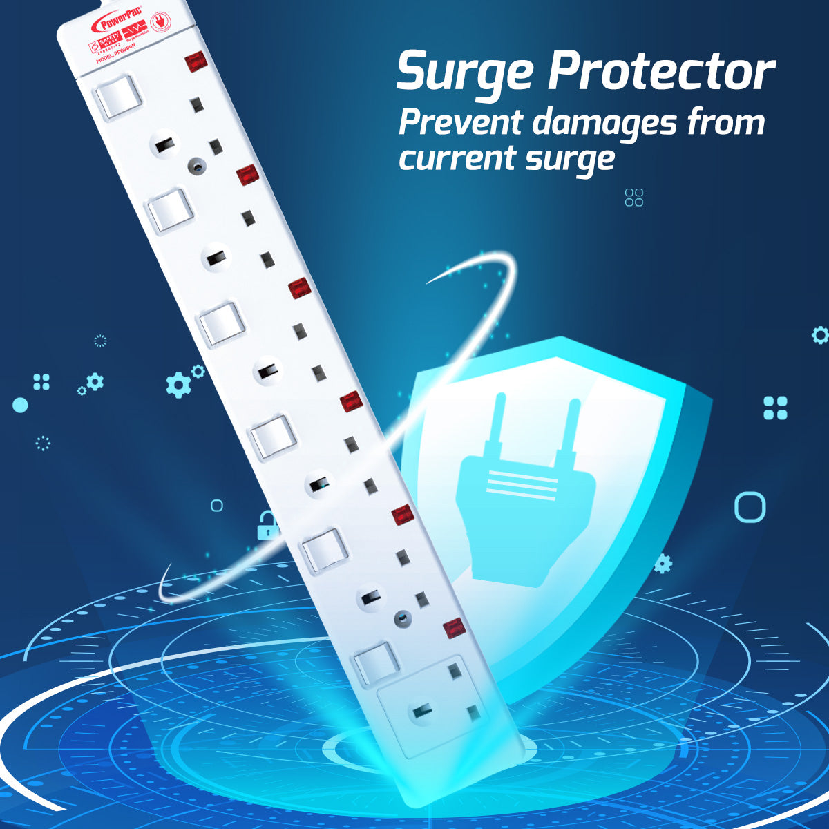 The PowerPac 6 Meter 6 Way Extension Cable PP6886N is lightweight & compact and comes with Singapore's Safety Mark (191418-12) attesting to its safety.