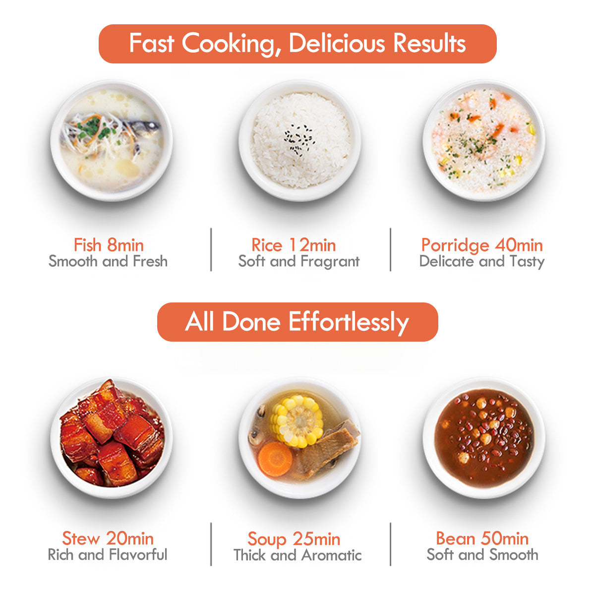 - Auto Keep Warm / Pre-set Timing of Cooking Programs