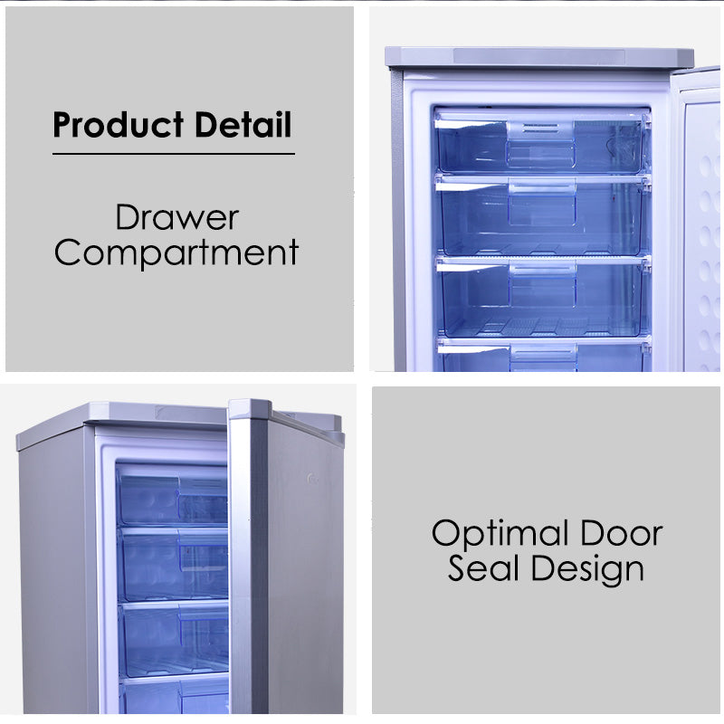 The 4 transparent drawers are deep and are able to contain a lot of food items, such as baby food or baby milk (breast milk) and also frozen food during festive season. The drawers easily slide out and are easy to clean. You will also discover that the door opens & closes smoothly & safely. The Door Seal locks tightly each time, sealing food hygienically.