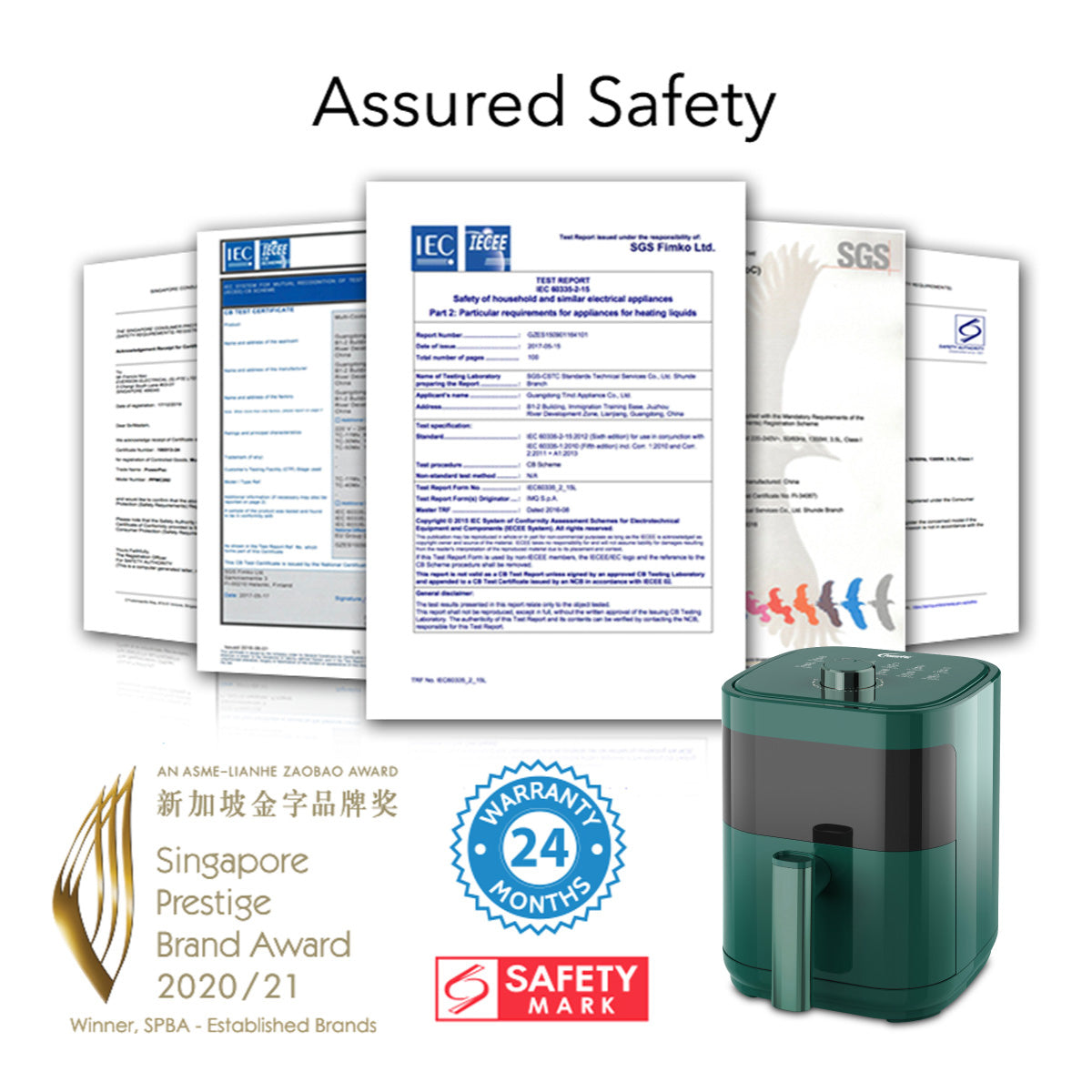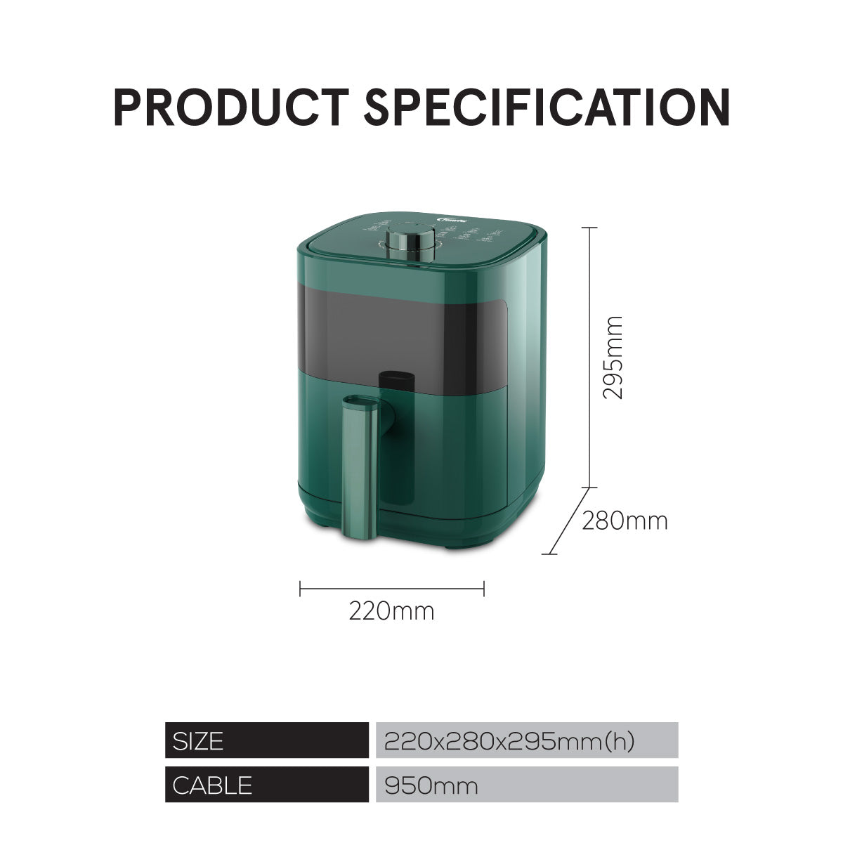 The PowerPac 3L Air Fryer with hot air flow system PPAF636A comes with overheat protection function for added safety. The Ultramodern style with space saving design is suitable for the modern kitchen, while advocating for a clean and healthy lifestyle.