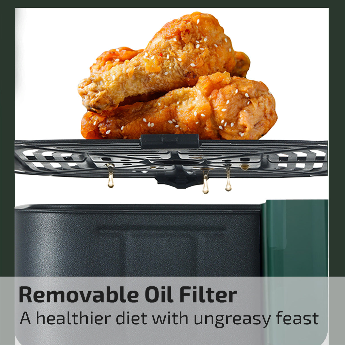This newly introduced fat-free Air Fryer will help you cook mains and sides you love in a healthier manner. Fat-free frying uses the principle of hot air combining with high speed air cycling (fast air change). It provides a one-time comprehensive heating, so for most foods, there is no need to add oil to cook. If you really prefer oil for the taste, at the very least, it uses less oil or 80% less fat than conventional frying, which is very unhealthy. This also keeps your kitchen oil-free and prevents odours from permeating throughout your home. With the additional Basket Tray, now you have a more convenient way to make delicious food like cakes & biscuits.