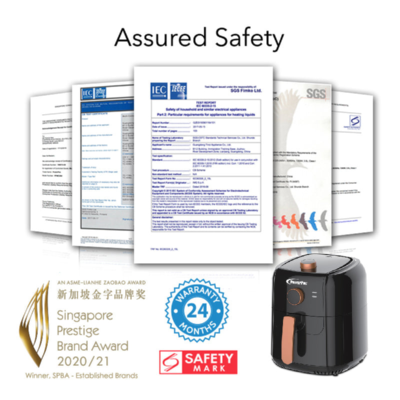 The PowerPac Air Fryer with Hot Air Flow system PPAF656 comes with overheat protection function for added safety measures. The Ultramodern style with space saving design which is suitable for modern kitchen for a good and healthy lifestyle.