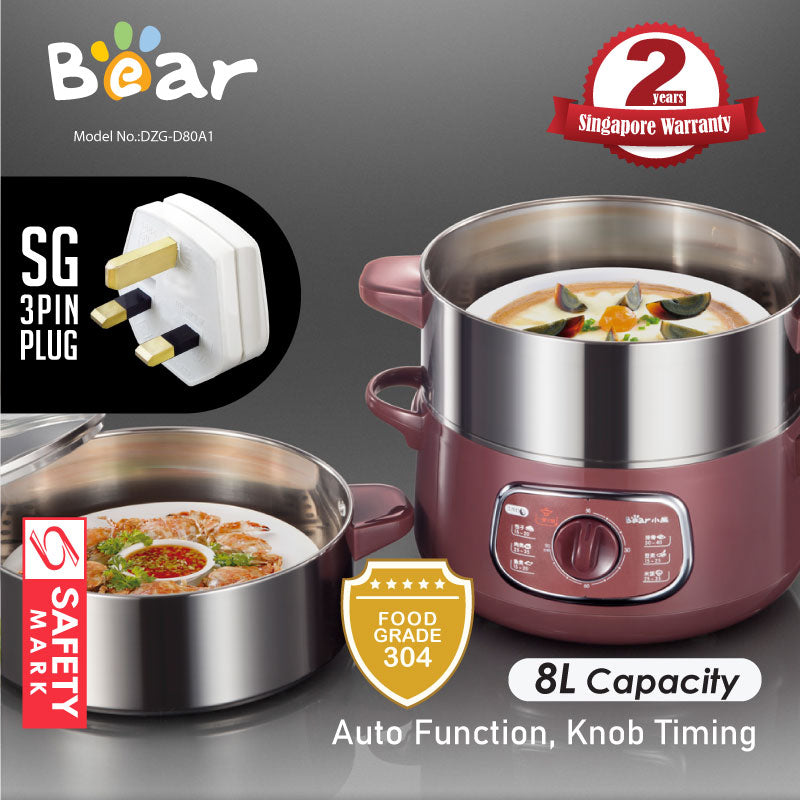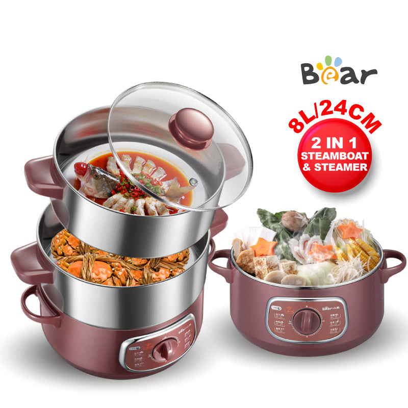 Bear 2in1 Steamer & Steamboat 2 Tier Stainless Steel convenient Steamer 8.0L 800Watt , Food Steamer(DZG-D80A1)