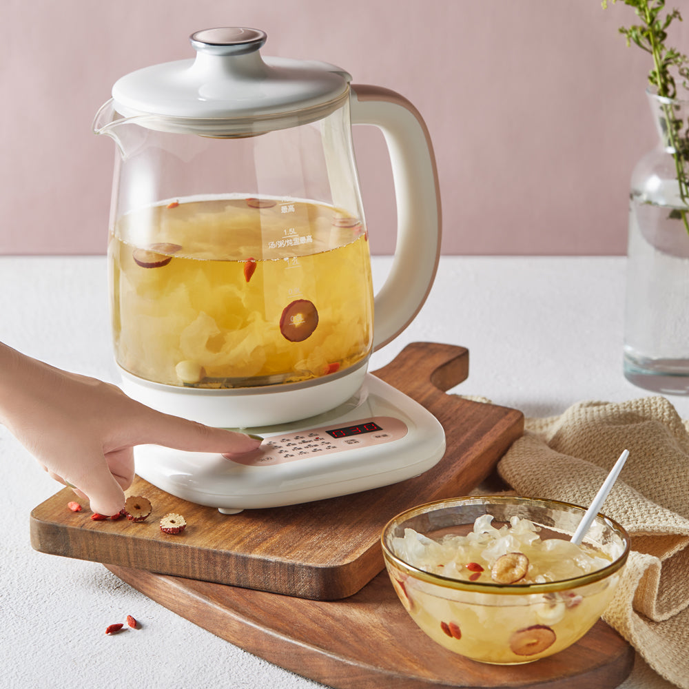 The Bear Cordless Health Teapot 1.8L Glass Jug YSH-B18A6 is a masterpiece in design and craftsmanship. Made of heat-strengthened tempered glass, the boiling process is a wonder to behold. The 1.8L Glass Jug is a BPA-free Thickened High Borosilicate Pitcher with Food Grade SUS 304 Stainless Steel Strainer and built-in Micro-chip, and comes with 16 Preset Functions.