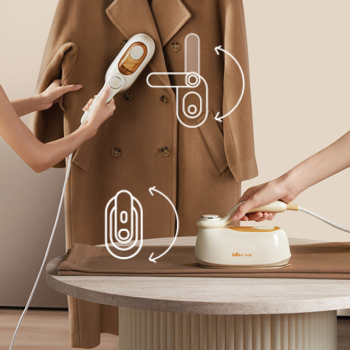Stylish, powerful, and travel-ready — the Bear Mini Handheld Garment Steamer is your everyday solution for effortless garment care.