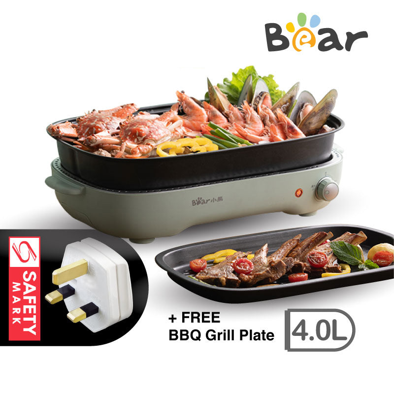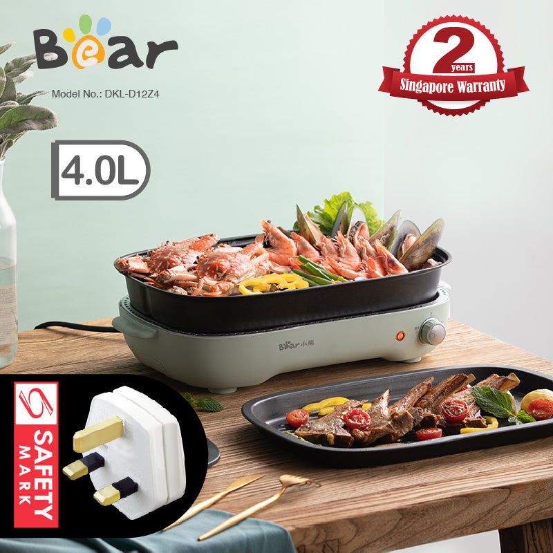 Bear Steamboat with Removable BBQ Grill and Steamboat Pot, 2 in 1 Multi Cooker (DKL-D12Z4)