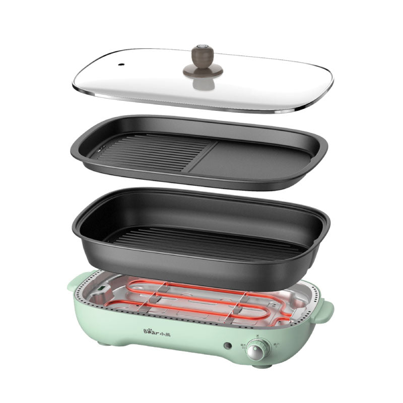 The Bear Steamboat with BBQ Grill, 2 in 1 Multi-Cooker DKL-D12Z4 carries out the cooking functions of many appliances all within one versatile and time-saving tabletop electric appliance, freeing up your modern kitchen's already limited space.