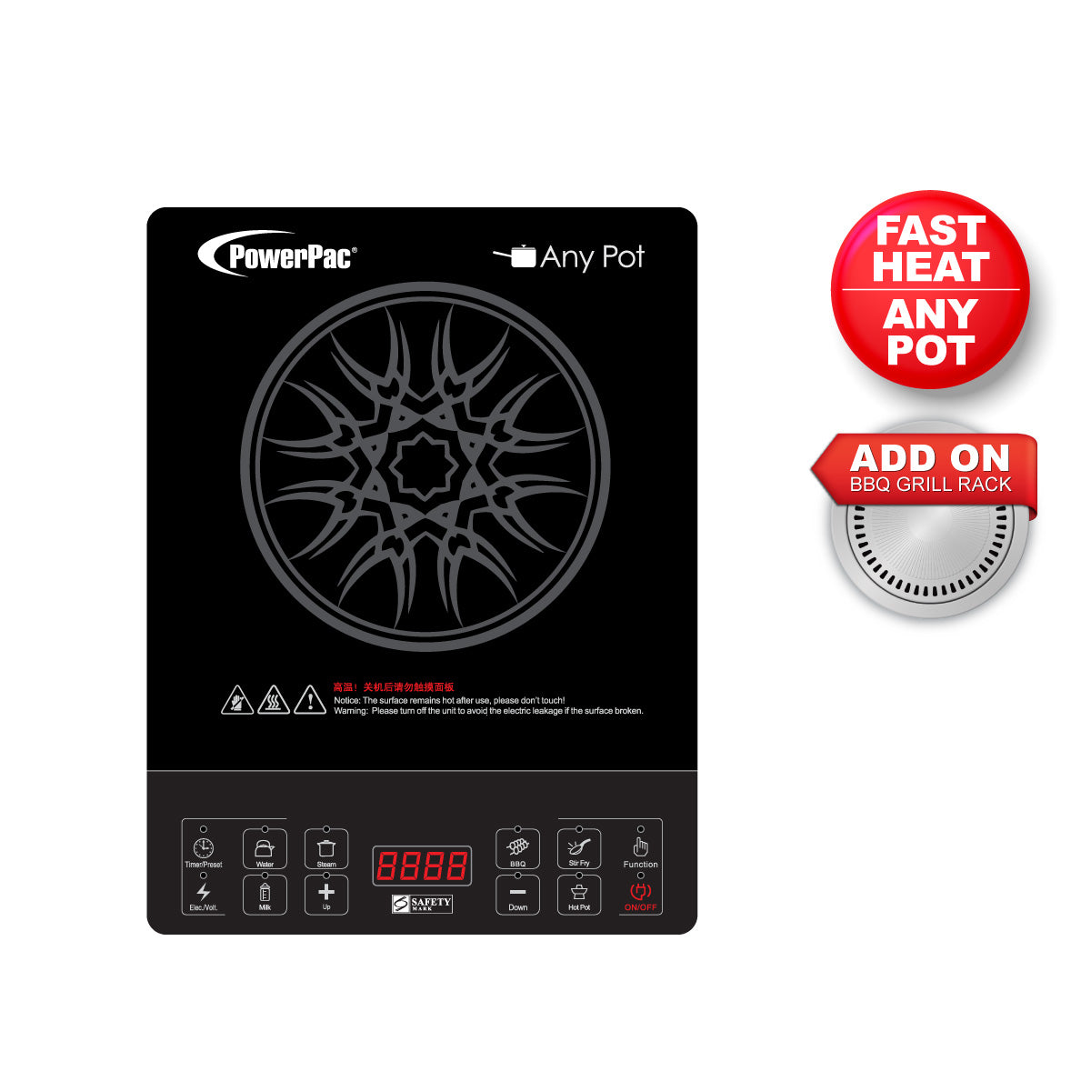 The PowerPac Ceramic Cooker Steamboat PPIC832 makes use of far-infrared light to heat food. It is especially suitable for modern family cooking. Its main characteristics are as follows: