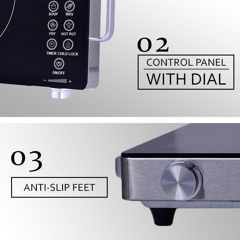 - Constant-temperature over-heat protection: when the temperature of cooker surface reaches 580 deg C, the cooker will shut off automatically