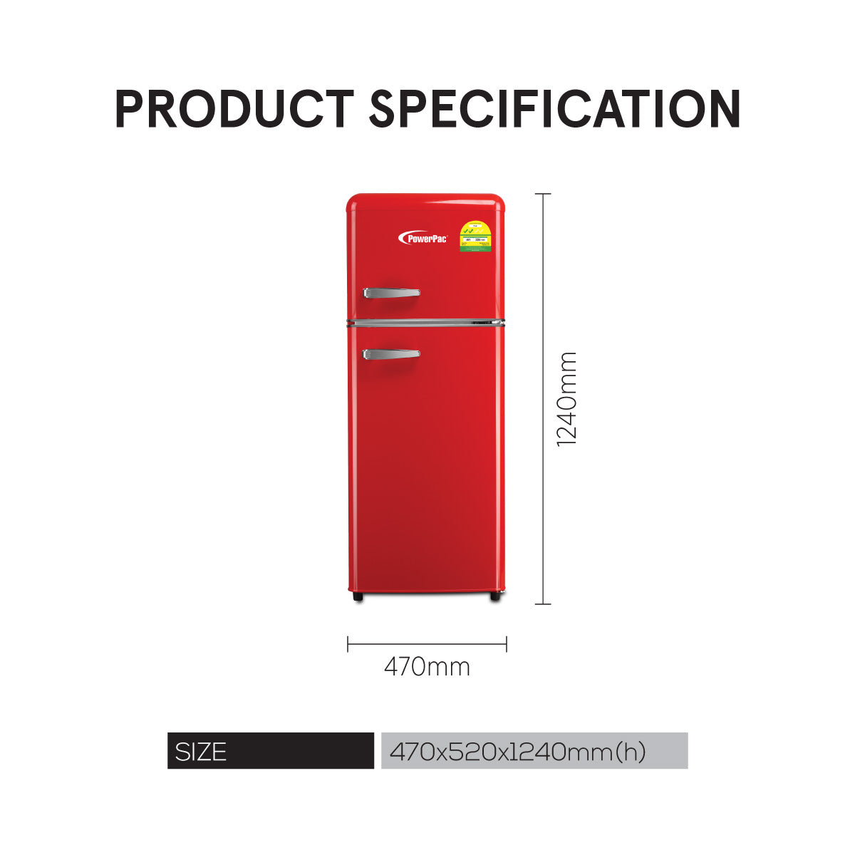 2-Door Fridge 114L Retro Fridge, Mini Fridge (PPF118) Red