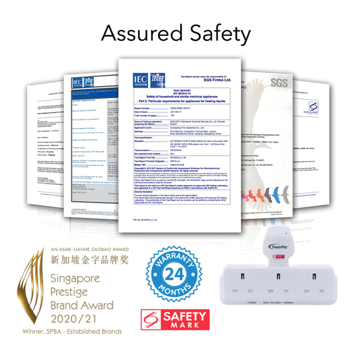 The PowerPac 3-Way Adapter for 3-Pin Plug PP277 is lightweight & compact and comes with Singapore's Safety Mark (230741-12) attesting to its safety.