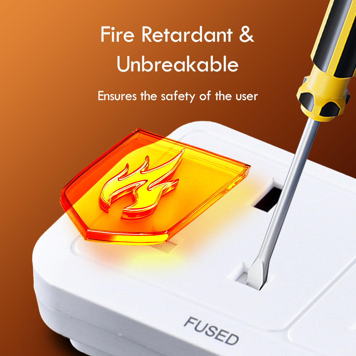 Important safety features includes: Safety Shutter which prevents children from tampering with the device. All materials are Fire-retardant.