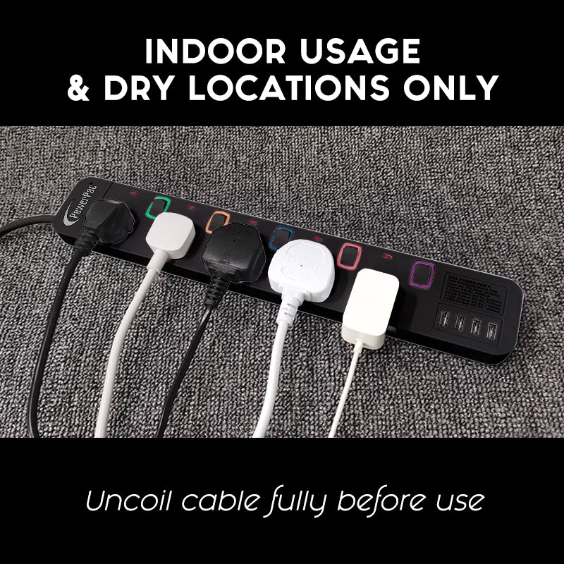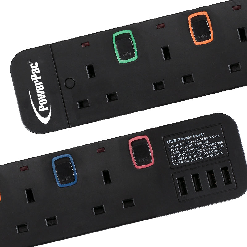 Power Extension Socket Extension Cord 6way 3 meter with 4x USB Charger (PP9116UBK)